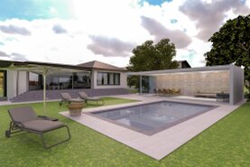 3D Visualisierungen Neubau Outdoor Bereich mit Pool