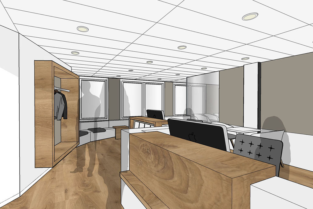 Bei seinem Projekt war die Herausforderung der zeitliche Ablauf. Seine Zeitvorgabe waren äusserst knapp, da wir zuerst ein Umnutzungsgesuch bei der Stadt Solothurn eingeben mussten. Dank dem Goodwill der Stadt Solothurn konnten wir bereits nach sechs Wochen mit dem Umbau beginnen, der sechs Wochen dauerte. Leider hatten wir noch mit Asbest im Gebäude zu tun, was uns Zeit kostete. Bei der Gestaltung der Praxis liess er uns freie Hand und wir konnten ihm mittels skizzierten Ideen unsere Ideen aufzeigen und das nun gezeigte Projekt unkompliziert planen und umsetzen.